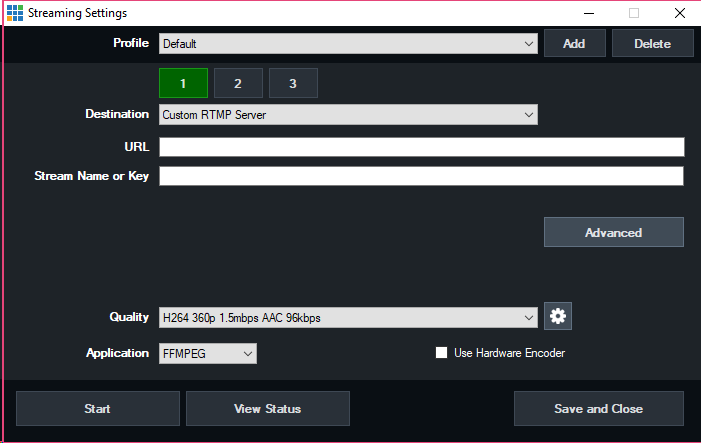 An overview of all the settings available can be found in the Streaming - Settings section.