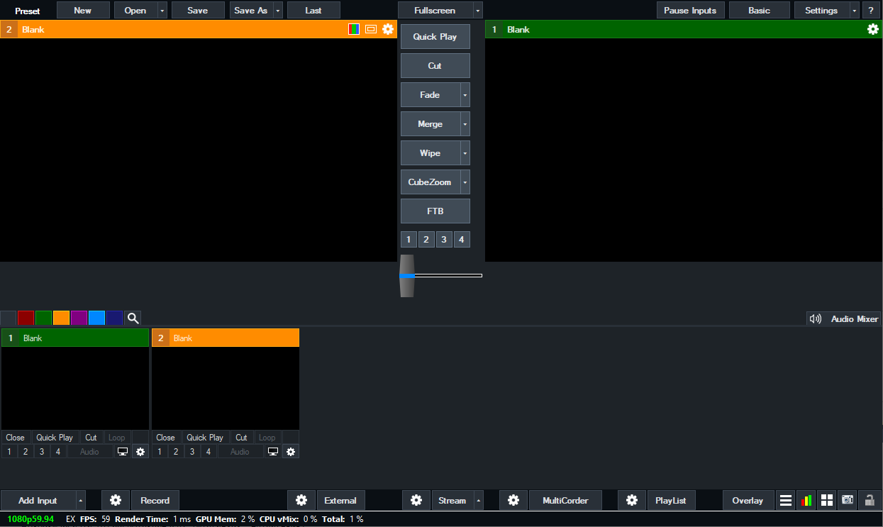 Just like a traditional video mixer, an input you wish to display should be placed in this preview window first.