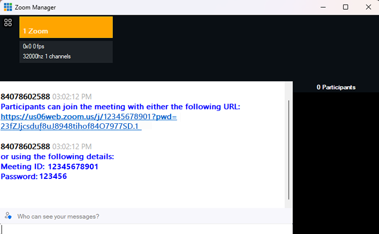 Before we get into showing Zoom caller participants, we'll have a look at the Zoom Manager window.