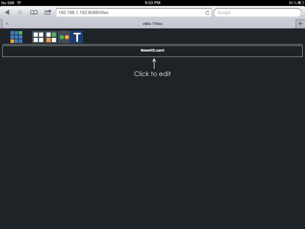The fourth screen in the vMix Web Controller allows you edit vMix titles right from your tablet or phone! This means that you have someone controlling the titles completely separately from the vMix producer.